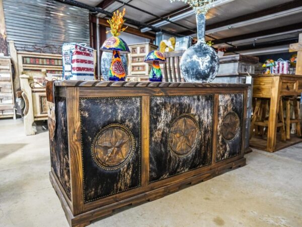 Triple star dark brindle cowhide executive desk