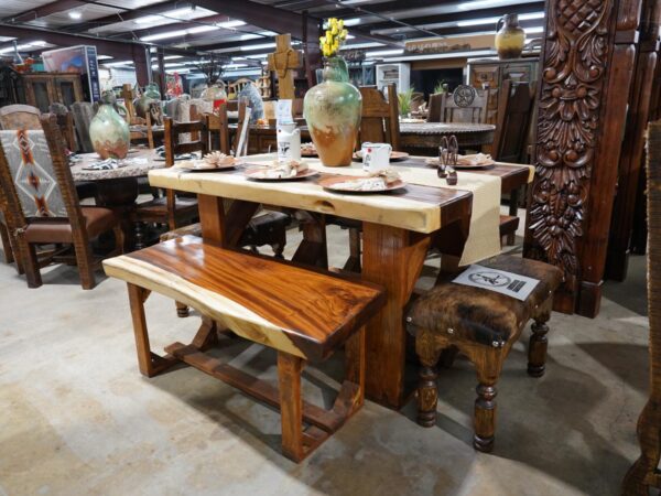 Mesquite desk 6 ft with live edge and turquoise in lay stone